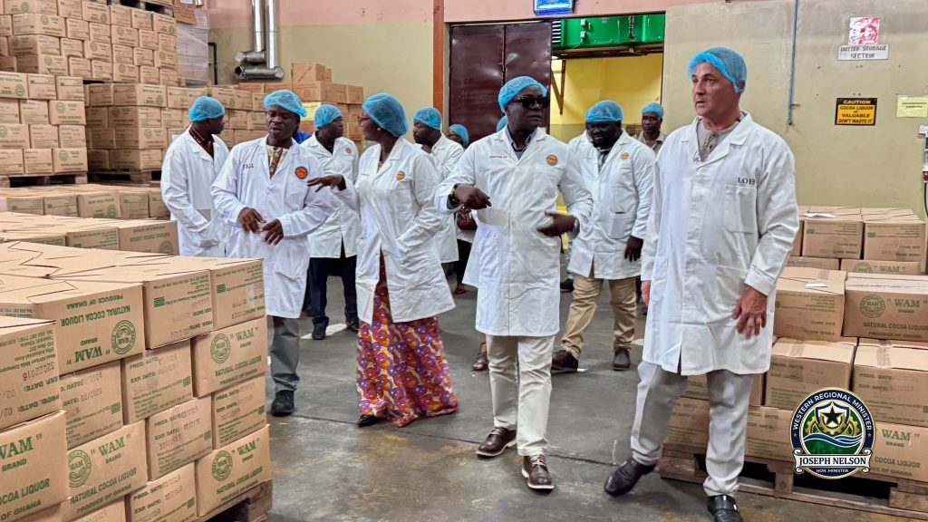 In line with the government’s policy to allocate 50 percent of raw cocoa beans to local processing companies, the Western Regional Minister, Hon. Joseph Nelson, together with the Regional Coordinating Director, Ms. Rachel Fosua Sarpong, visited the West Africa Mills Company (WAMCO) on Thursday, March 5, 2026.